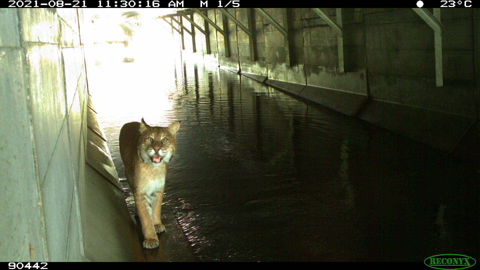 Un lynx roux capté dans le ponceau de la sortie 115 de l’autoroute 10, à peine une semaine après la fin des travaux.